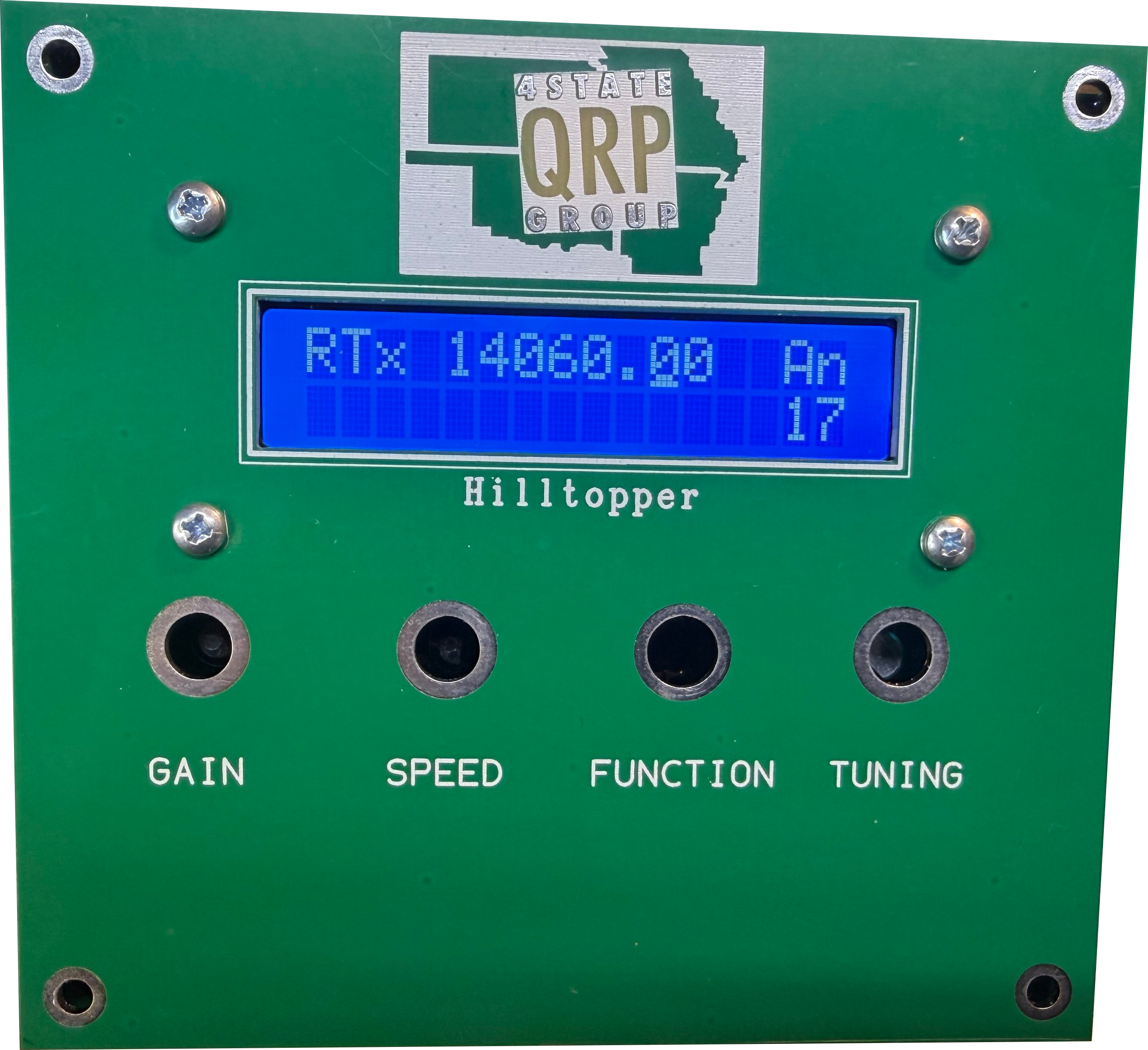 Hilltopper Upgrade Kit, Converts an original Hilltopper transceiver to a Hilltopper TallBoy transceiver The popular Hilltopper monoband CW transceiver was recently re-released as the Hilltopper TallBoy. The new version retained all of the hardware features of the original Hilltopper while adding a 2-line x 8-character digital LCD display as well as several new operating convenience features. 4SQRP is now pleased to offer an Upgrade Kit that will transform any of the original Hilltopper transceivers into a TallBoy version, with the added improvement of a 2-line x 16-character LCD display. The Upgrade Kit consists of a new top cover to fit the 2x16 Display; new front, rear, and side panels; a new microprocessor chip programmed with the most recent firmware; a backlit 2x16 LCD display panel; and all the necessary hardware to complete the conversion. The upgrade should take no more than a couple of hours on the workbench. No cutting or drilling is required, just some unsoldering and re-soldering, and popping a new chip into its socket. But wait, there's more.... IMPORTANT: