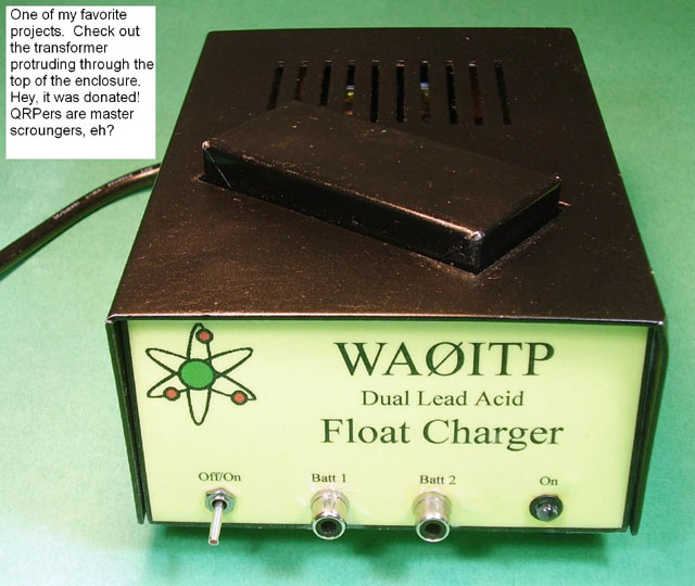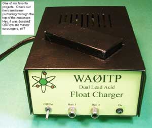 Terry, WAØITP's ATS-3 transceiver. | Terry, WAØITP's battery float charger. | |
