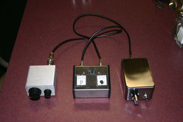 For "show and tell", Tom, N2UHC brought his brand new home built transmitter and his "Tin Ear" 40 meter receiver. Along with a T/R switch, this makes a complete QRPp station. Tom has more info about his projects on his N2UHC web site.