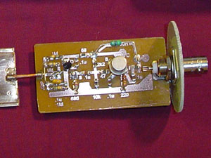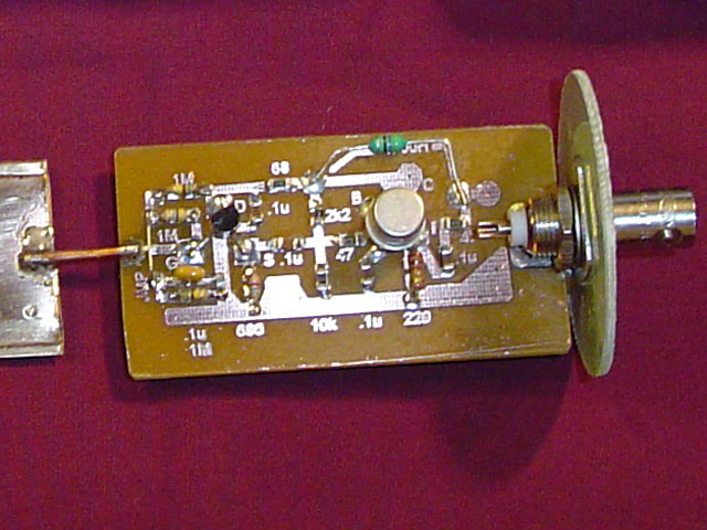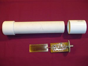End view of the antenna. There is a BNC connector mounted on the preamplifier board. |