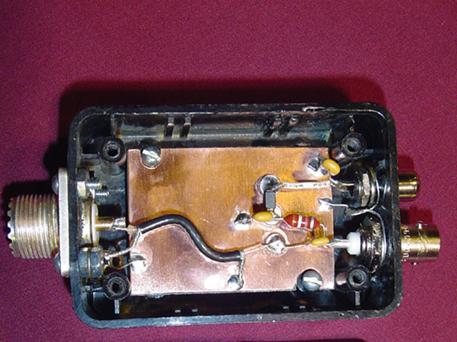 The power adapter with a BNC connector on the antenna input and a SO239 for the receiver connection. |