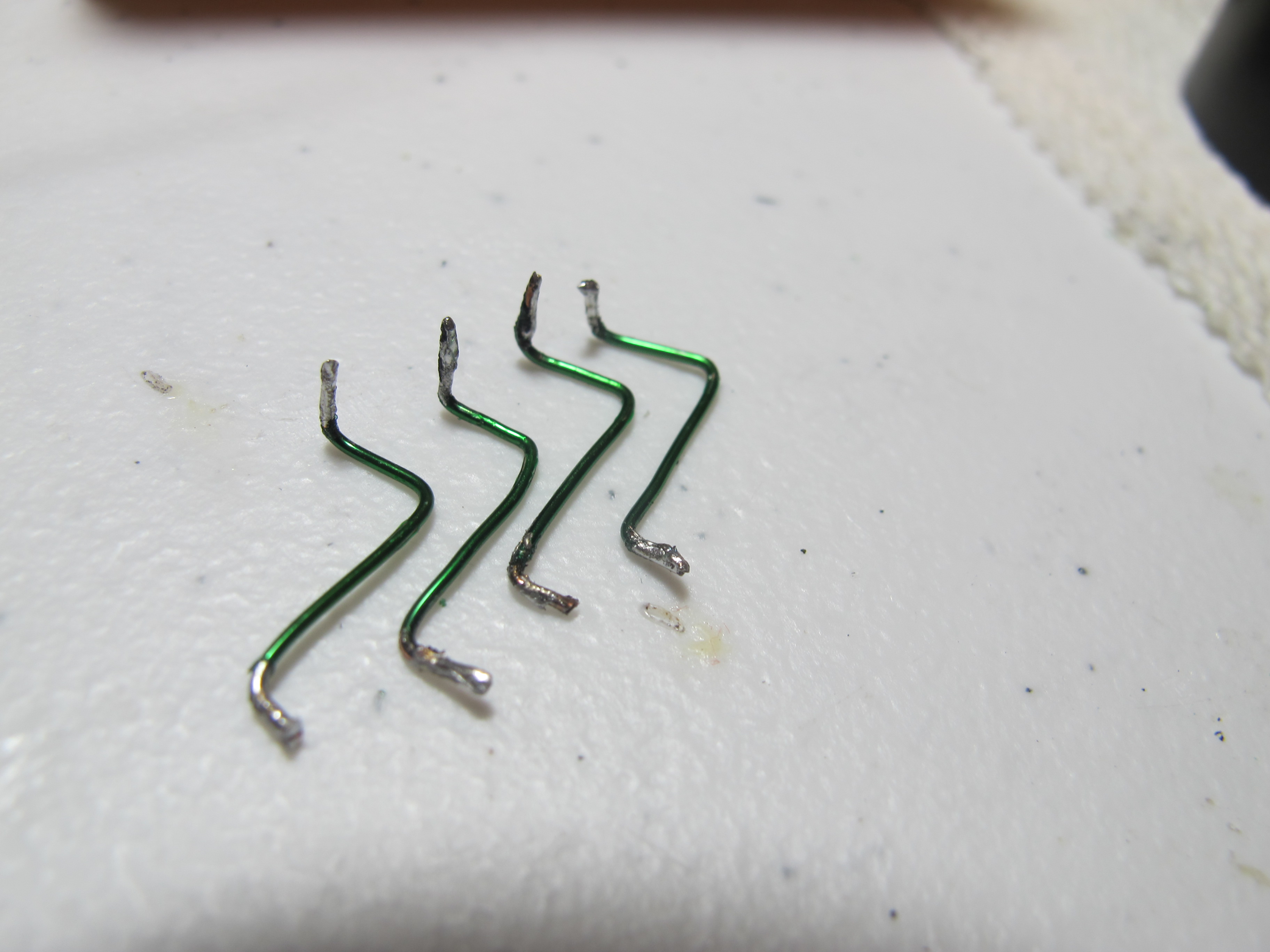 ( ) Cut four 1.25" pieces of green magnet wire, pre-bend them