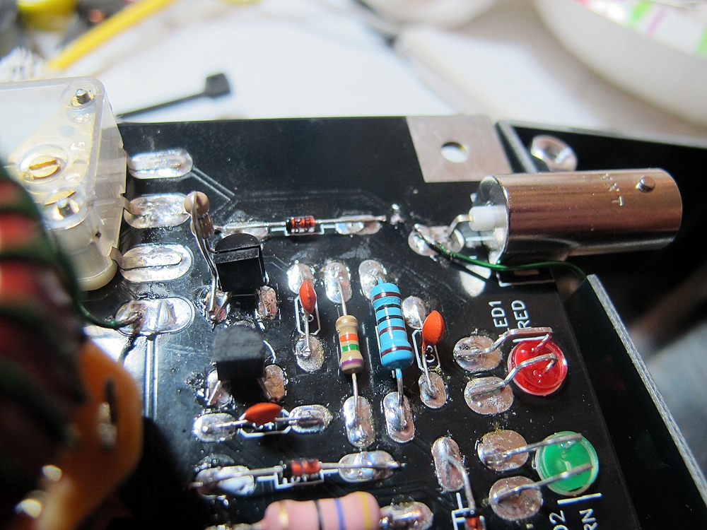 12. Then continue adjusting the polys back and forth in small increments until the RED led completely extinguishes or very nearly so.