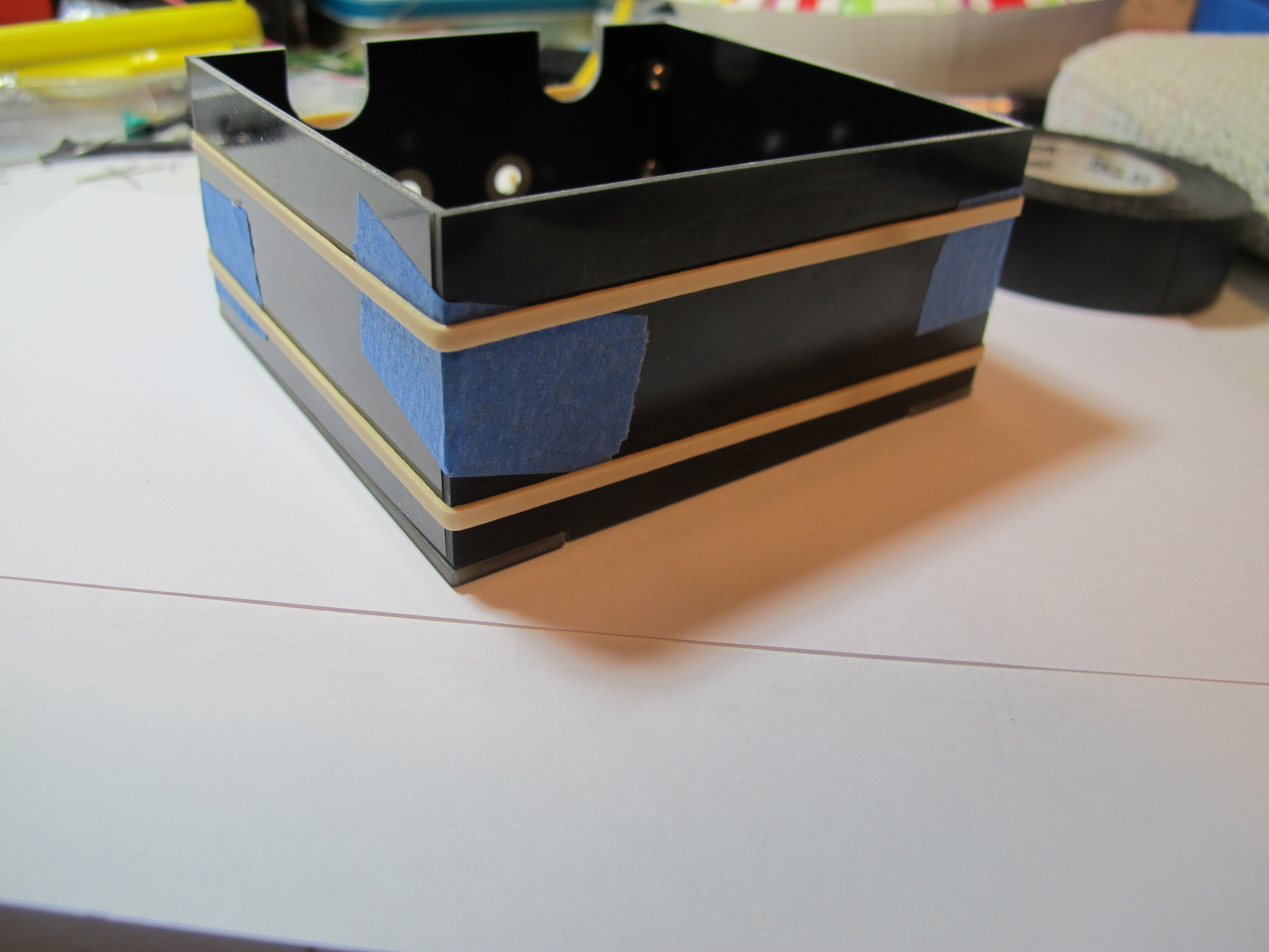 ( ) Hold sides snugly in place with two rubber bands.