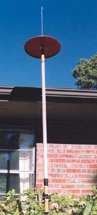 K6QKL's homebrew Pizza Pan 80 Meter Antenna. Click on the photo to view a larger image. |