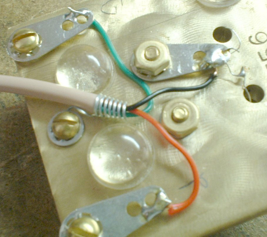 The second photo shows the strain relief installed on the underside of a keyer paddle.